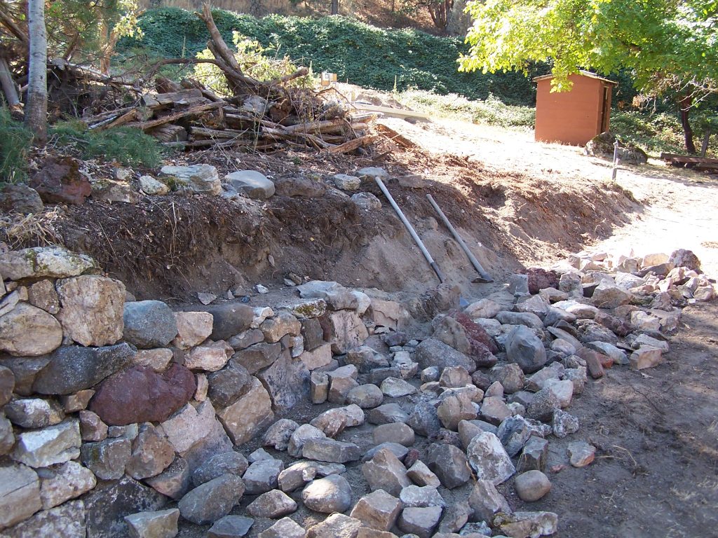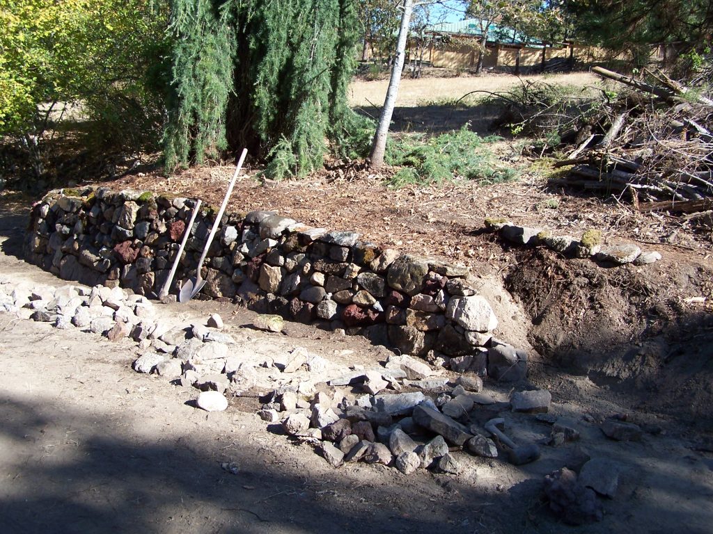 Rock walls leave something visible from my labors, which is far different than sermons given on Sunday and gone on Monday. I like the challenge of taking a pile of jumbled boulders and rocks and skillfully stacking them into a wall that 1) stays standing while retaining soil on the high side, and 2) looks attractive. Form follows function.